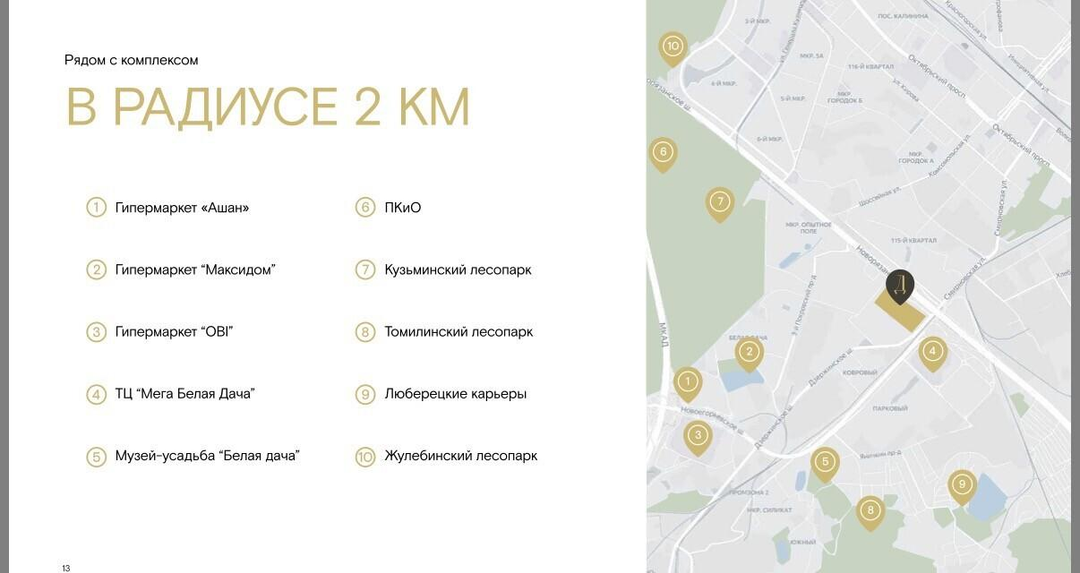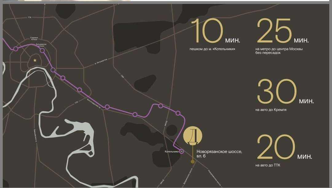 3 км от МКАД, удобный выезд на Новорязанское и Дзержинское шоссе — гарантирует высокий автомобильный трафик и отличную транспортную доступность.