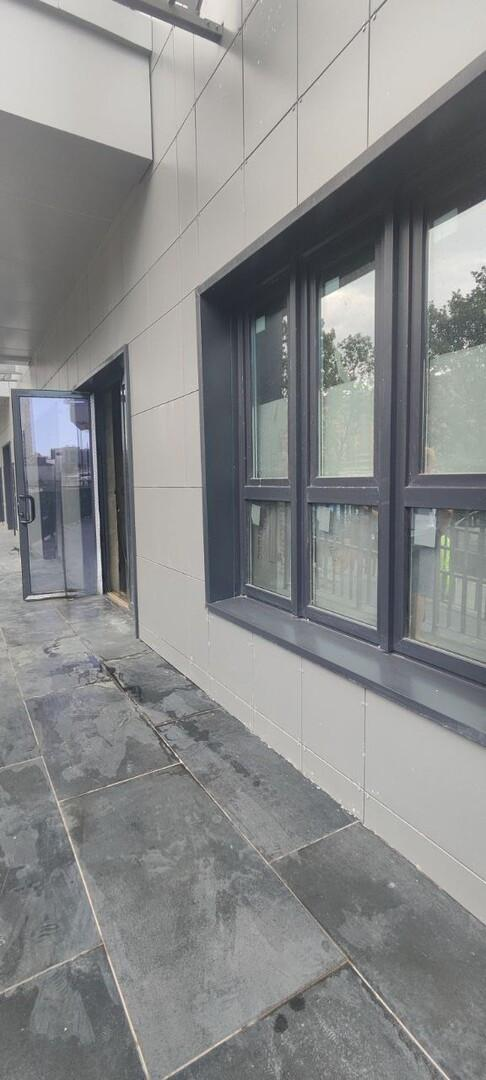 Вход - окна в пол,остальные окна расширенного формата.Дом сдан.