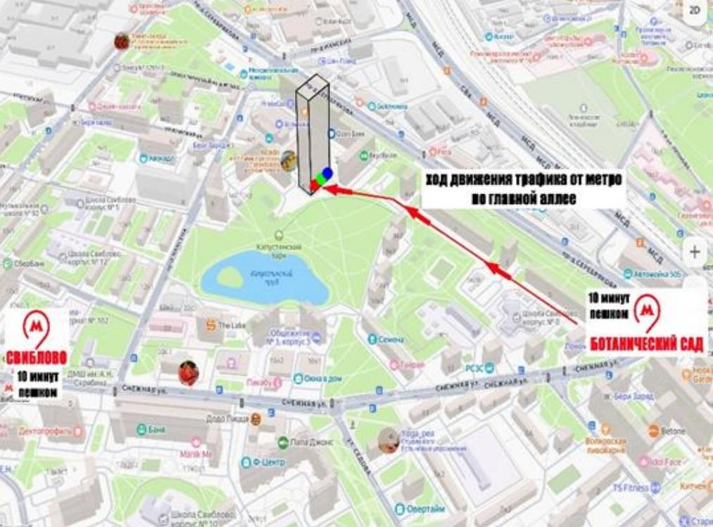 *Уникальное преимущество: транзитный трафик от главной аллеи парка — все жители и гости проходят мимо вашего помещения;