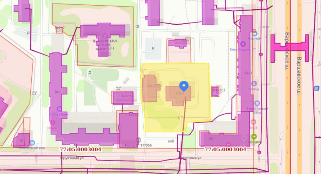 Земельный участок со зданиями 1069 кв.м. в Нагорном районе ЮАО города Москвы, расположенный по адресу: Варшавское шоссе, дом 66 корпус 2, общая площадь земли - 5132 кв.м (кадастровый номер 77:05:0003004:165, в аренде у города до 2030 года).