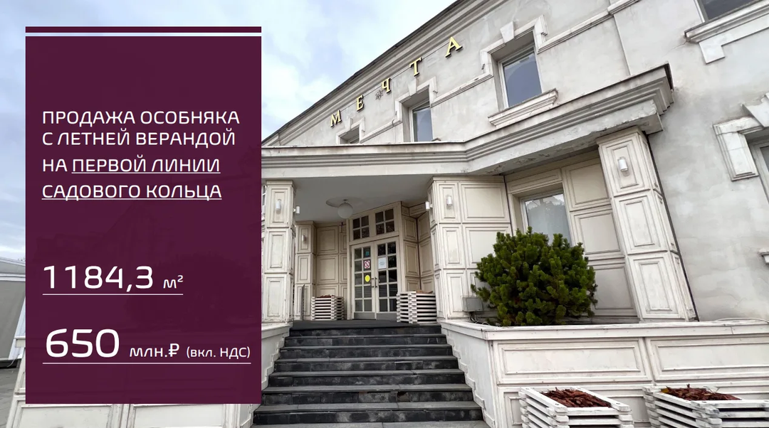 ВАШЕМУ ВНИМАНИЮ ПРЕДЛАГАЮ --- ОСЗ (особняк) на первой линии Садового кольца, с узаконенной летней верандой!