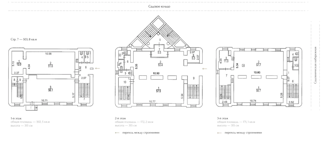 -стр. 7: 503,8 м2 (1 эт. - 503,8 м2, 2 эт. - 172,2 м2, 3 эт. - 171,1 м2;