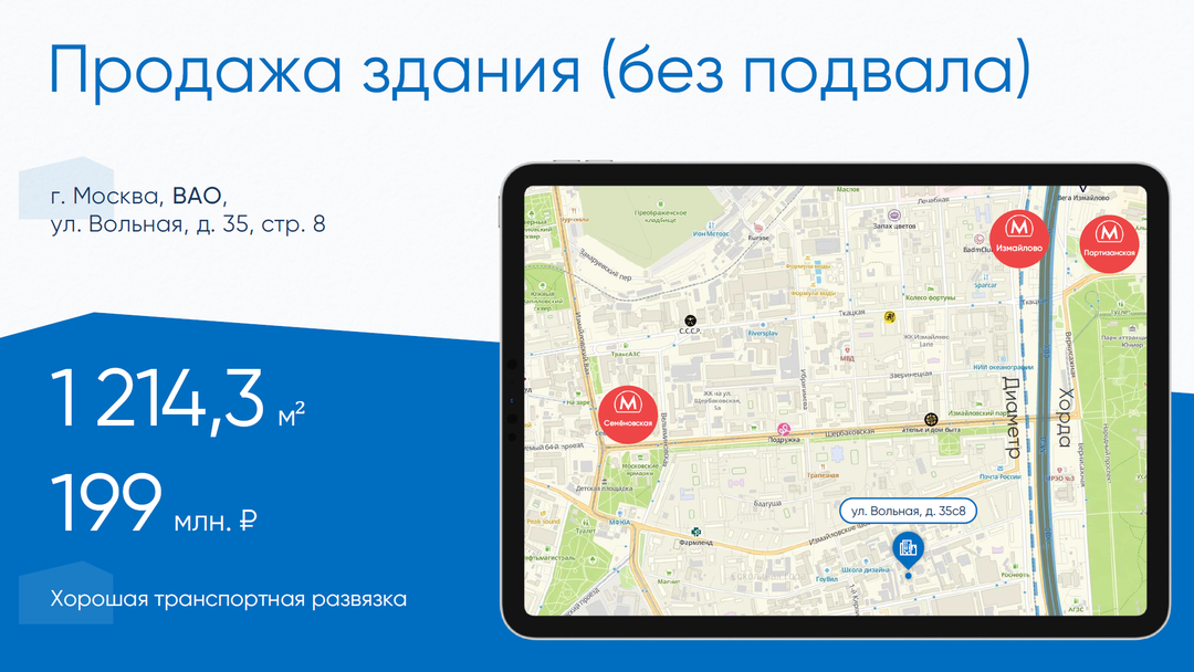 Продаётся отдельностоящее здание площадью 1 214,3 м2, расположенное на территории производственно-складского комплекса. Здание кирпичное, без подвала.