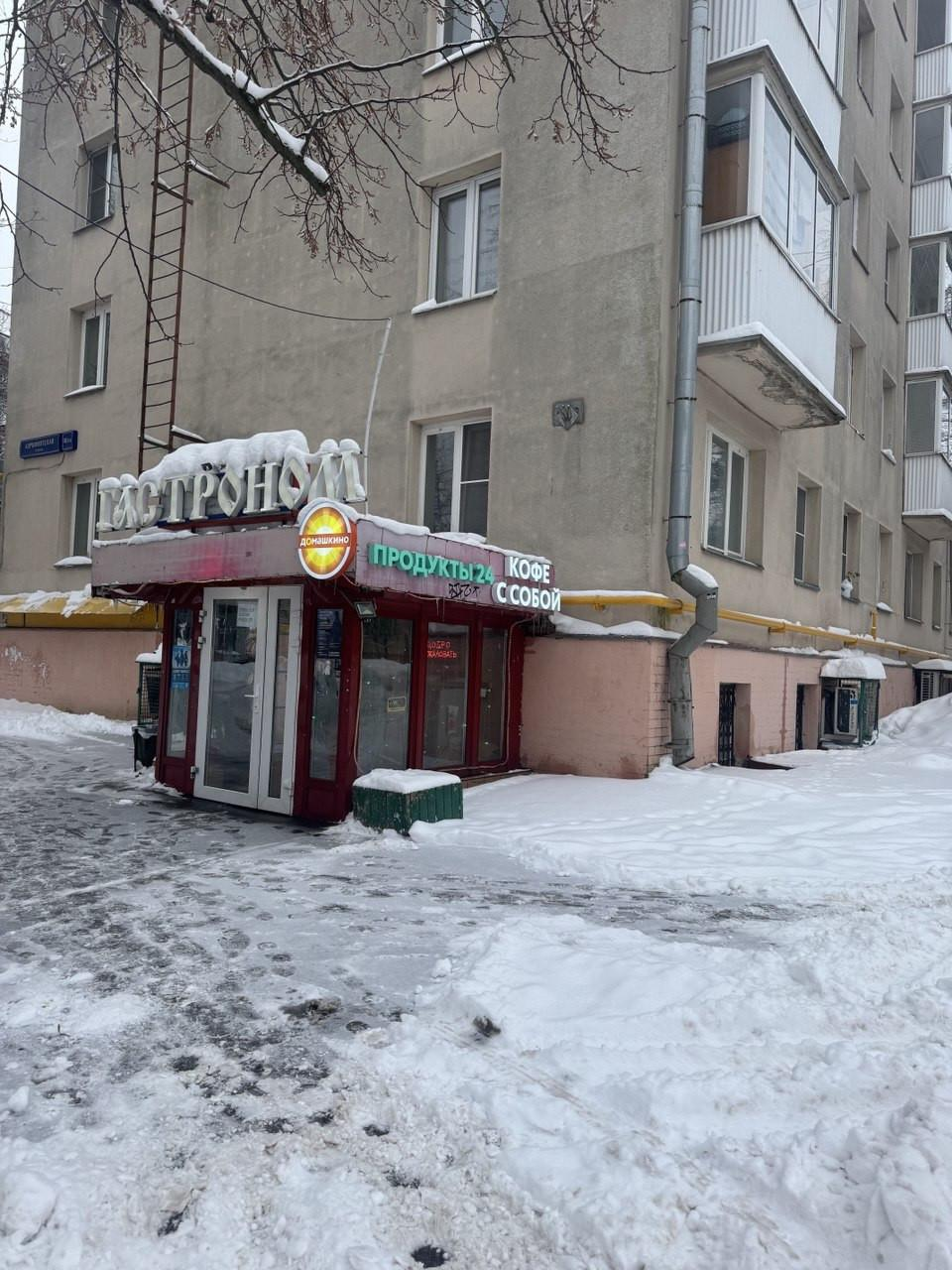 Находится в торце жилого дома, в спальном районе с высоким трафиком.