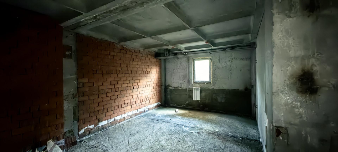 Поверхности стен подготовлены для финишной отделки: штукатурка нанесена частично. Электрика разведена по всем помещениям.