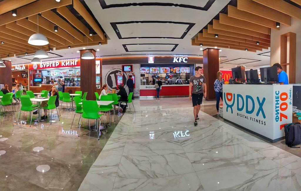 Второй этаж: Отдельная зона фуд-корта, привлекающая посетителей и увеличивающая время пребывания в центре.
