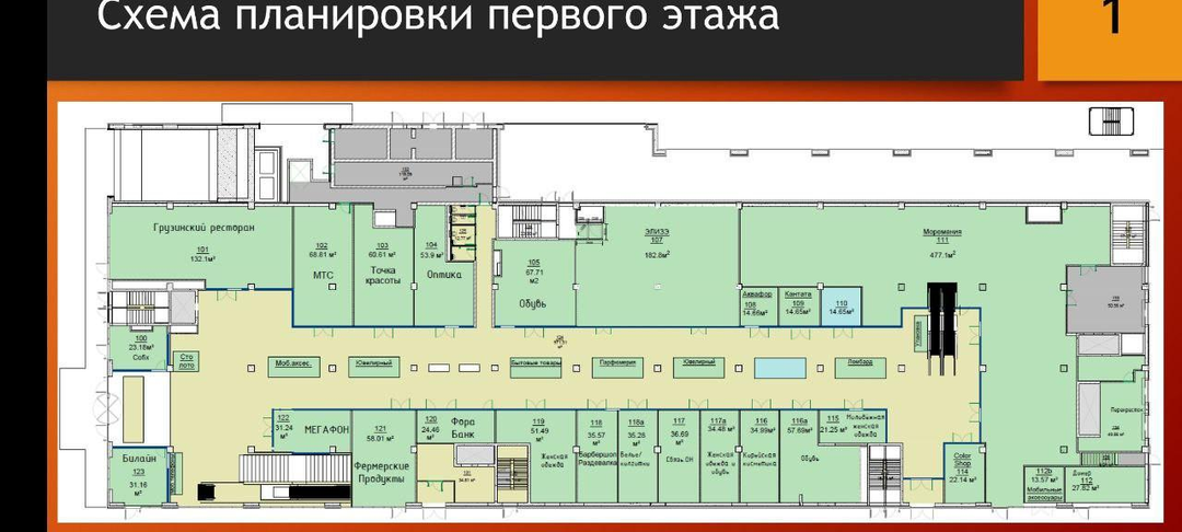 Первый и Третий этажи: Просторные торговые галереи, идеальные для ритейла и бутиков.