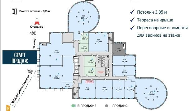 Универсальность пространства обеспечивается сочетанием производственных, складских и офисных площадей на этаже. Проект предусматривает комфортную зеленую зону вокруг центра, дополненную новыми подъездами и паковочными местами. На крыше здания дополнительные пространства для отдыха и работы резидентов.