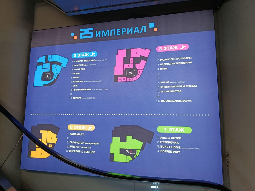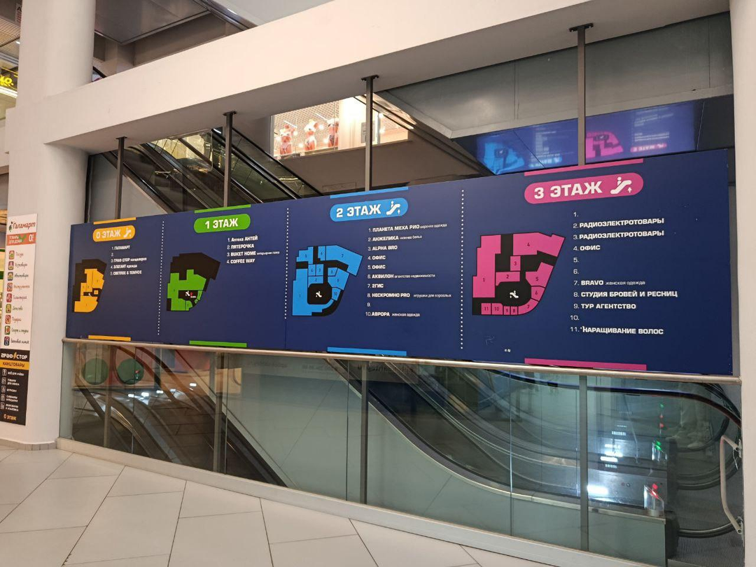 • Второй этаж рядом с эскалатором — место с постоянным потоком людей.