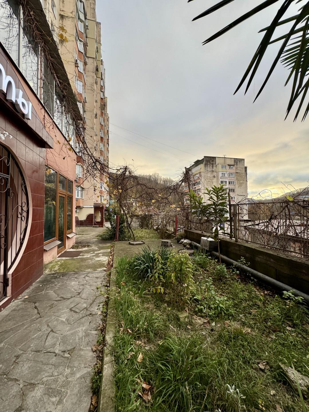 Красивые виды на горы и на новый жилой комплекс «Форт Адмирал» с новым спортзалом и бассейном. Рядом автобусная остановка, парковка.