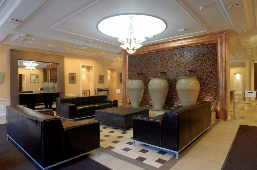 Два входа : основной -для резидентов и для сотрудников,