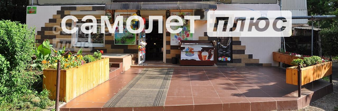 Перед магазином расположена большая облагороженная территория с клумбами, цветами и площадкой, которую можно использовать для отдыха на свежем воздухе.