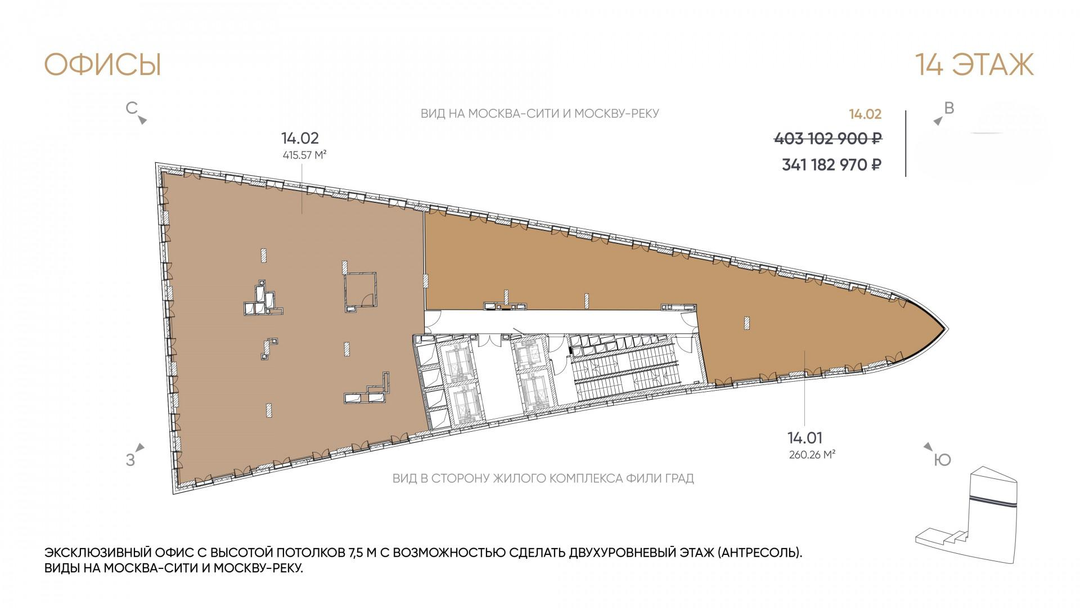 Эйлер» — ультрасовременное мультифункциональное здание в районе Филёвского Парка. Соседство с ЖК бизнес-класса, набережная реки и минуты до Москва-Сити создают идеальный баланс между деловой активностью и комфортной средой. Бизнес-центр класса А расположен по адресу: ул. Заречная, вл. 6, стр. 1. Общая площадь помещений — 23 545 м², 16 этажей + подземный паркинг на 108 мест. Завершение строительства — 2 квартал 2026 года. Ключевые преимущества проекта: престижная локация рядом с Москва-Сити, mixed-use экосистема, возможность естественного проветривания офисов, ранний вход для арендаторов в текущем году. Транспортная доступность: На авто: удобный выезд на Третье транспортное кольцо за 8 минут, до Садового кольца — 16 минут. Пешком: 12 минут до метро «Шелепиха» / «Фили», 1 минута до набережной реки. Архитектура и дизайн: Здание выдержано в «лайнеровской» стилистике: панорамные виды на воду и башни «Москва-Сити» создают эффект парящего над набережной лайнера. Офисы с французскими балконами: площадь от 24 до 104 м², высота потолков 3,6 м. Highspace-офисы: потолки 7,5 м, впечатляющие панорамы. Предусмотрена возможность естественного проветривания. Гибкие планировочные решения открывают простор для индивидуальных проектов. Технические характеристики: Цифровая бесшовная инфраструктура, автоматическое управление всеми инженерными системами. Центральная система кондиционирования и приточно-вытяжная вентиляция. Скоростные лифты с минимальным уровнем шума. Круглосуточное наблюдение, многоуровневая система охраны. Зарядки для электромобилей. Инфраструктура (mixed-use экосистема): Всё необходимое — под рукой: от утреннего кофе в кафе и встреч в клиентских офисах до вечерней тренировки в фитнес-студии и прогулки по общественной террасе с wellness-пространством на первом этаже. Рестораны, салоны красоты, продуктовые магазины — здесь живёт город в городе. Звоните нам для получения подробной информации по проекту и расчёта инвестиционной доходности.
