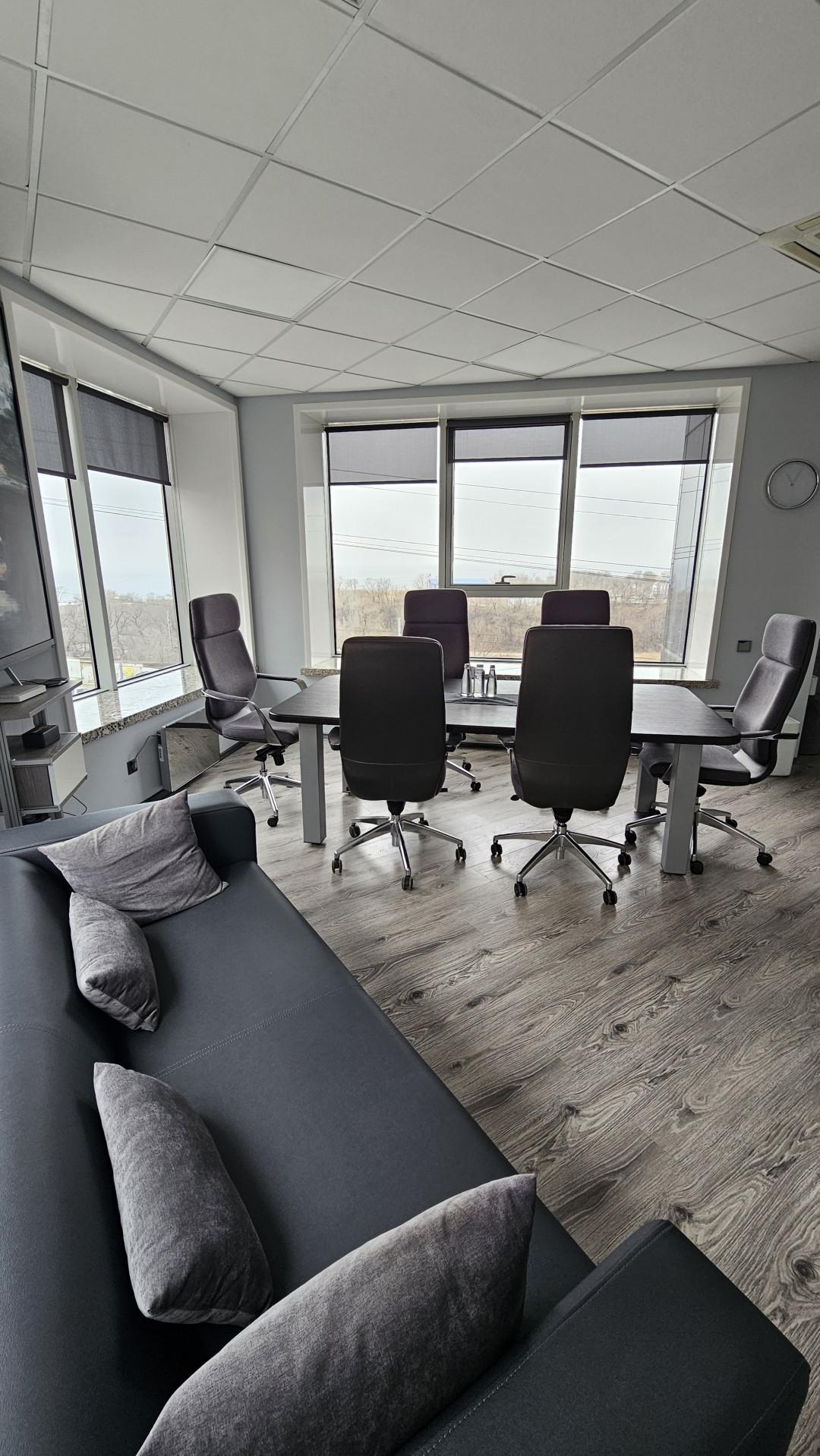 В офисе 2 кабинета, зона ожидания с видом на море, гардероб с мини кухней, бар.