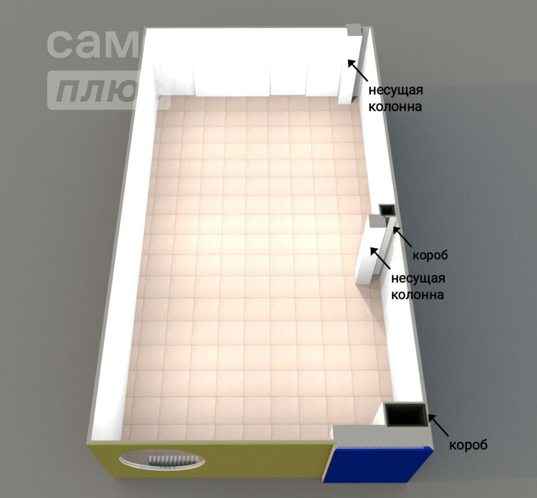 Коммерческое помещение площадью - 54,3м2 (по факту более 60м2), находится на 3 этаже.