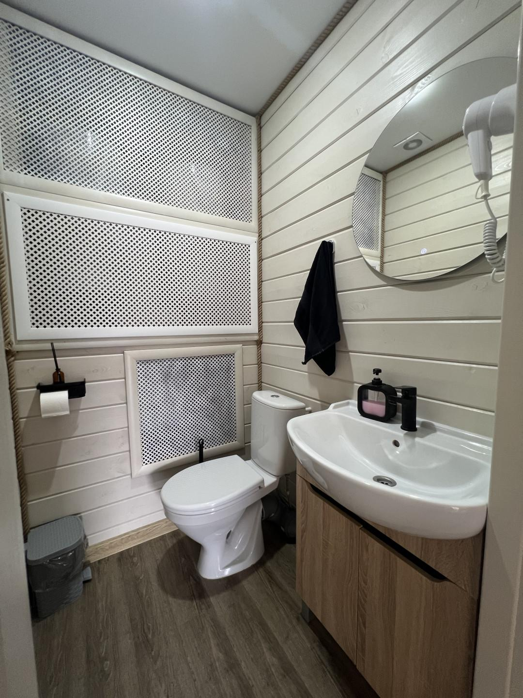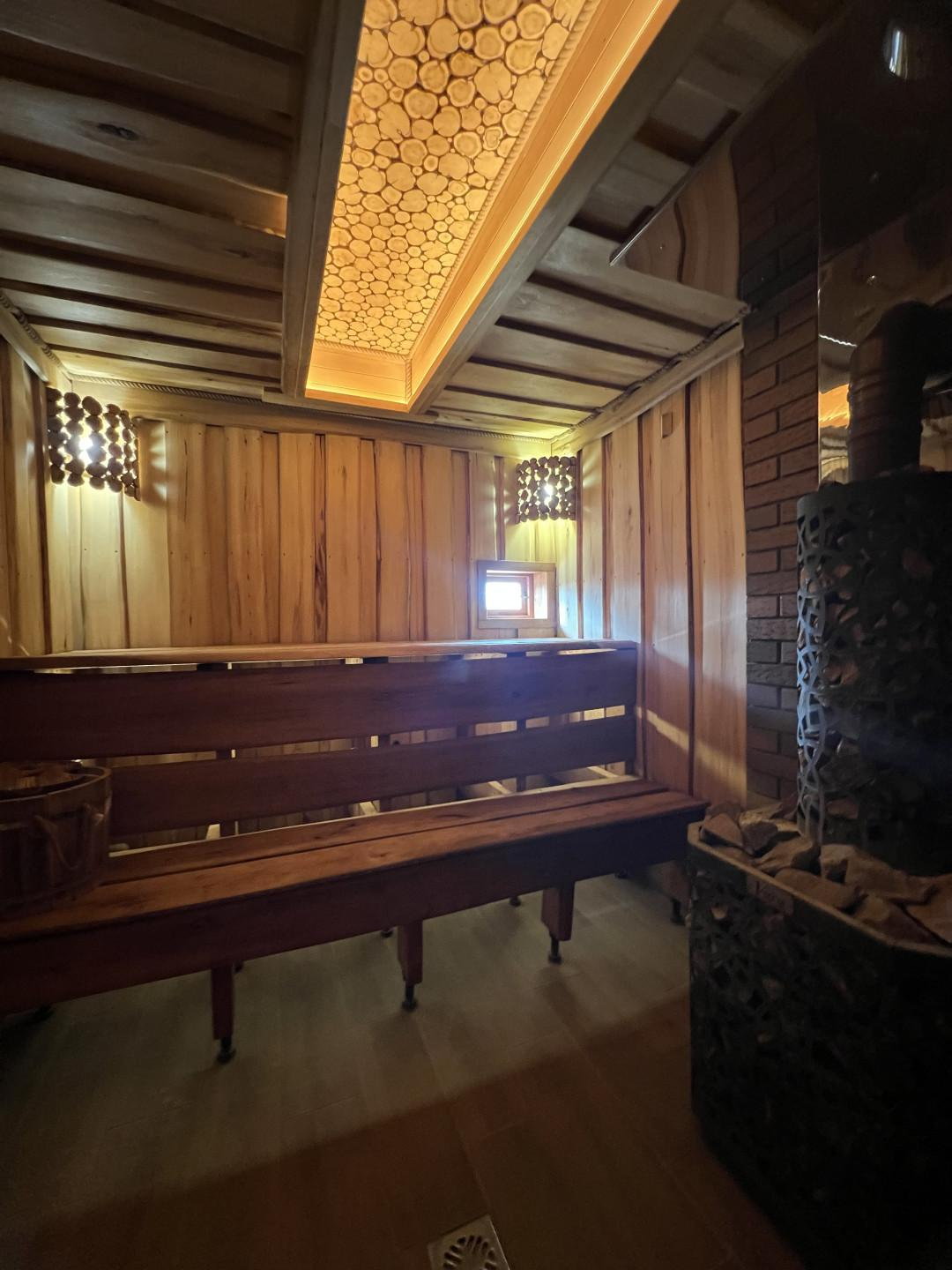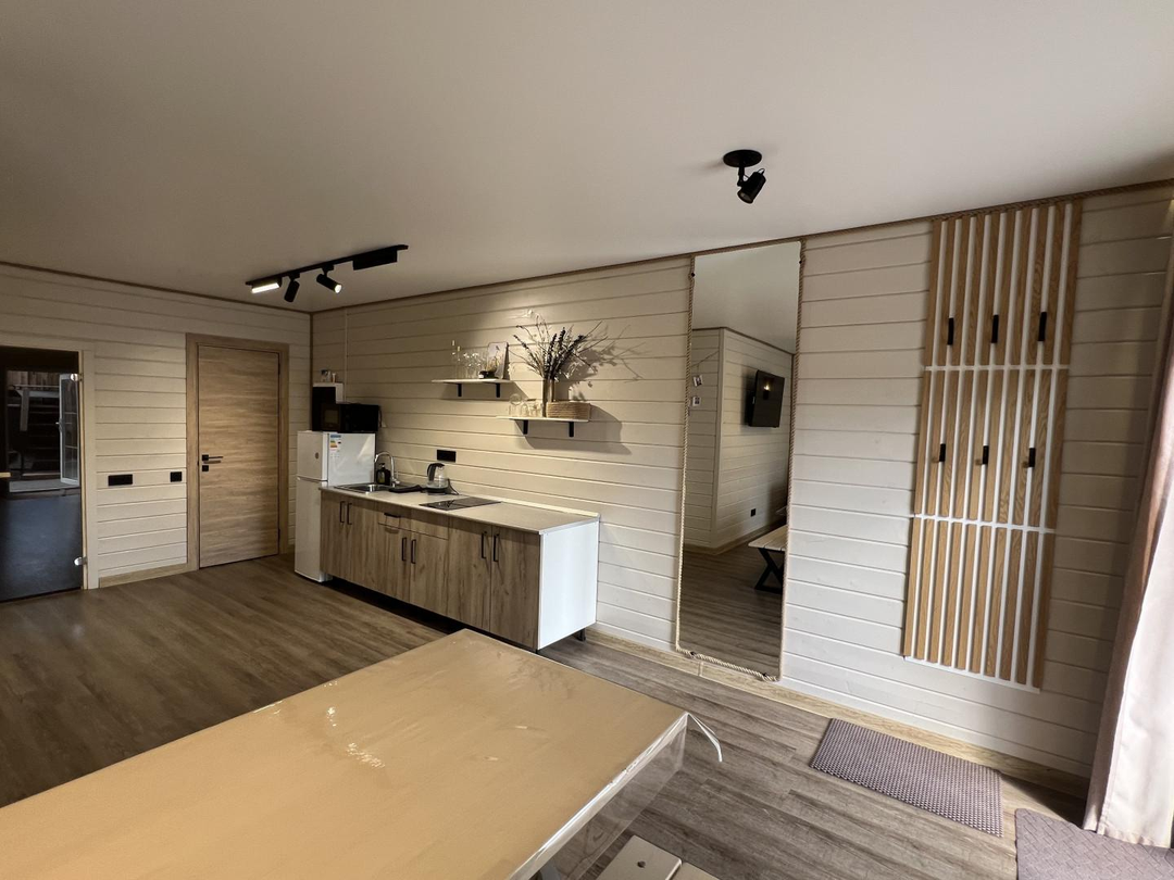 Дом ~54м2, баня на дровах, чан с топкой, мангальная зона, качели, посадочные места на террасе, плюс административный домик сразу за территорией комплекса. Адм.дом: ~16м2. Вода -своя скважина.