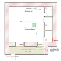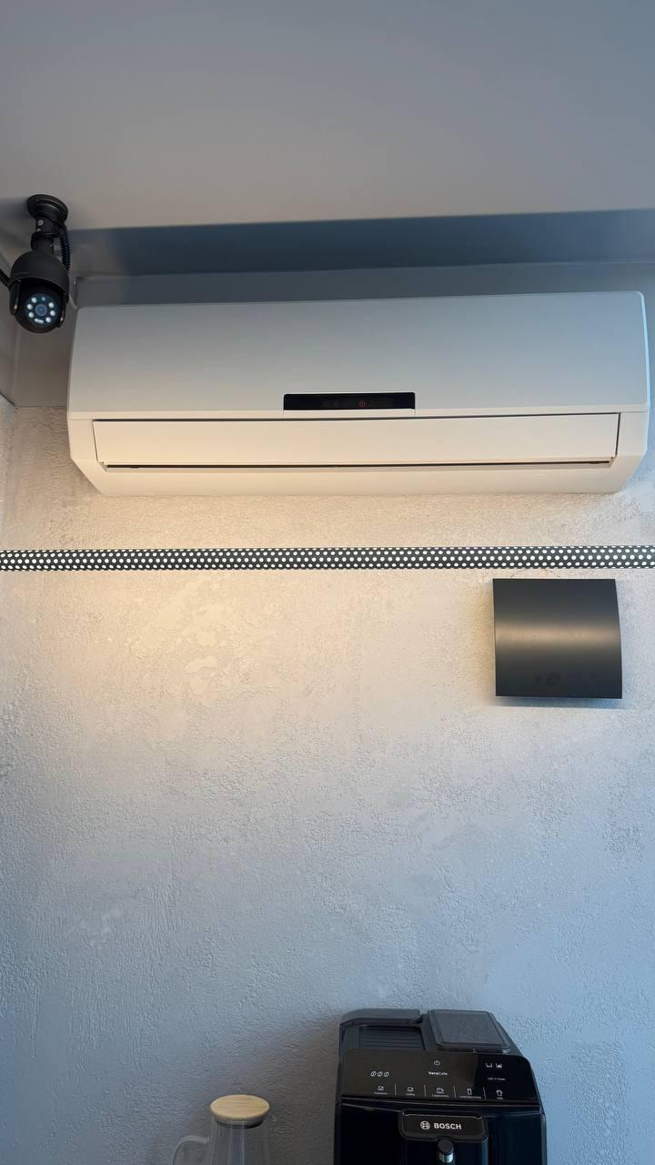 4) вытяжки, приточка, два кондиционера (потолочный кассетный и настенный), тепловая завеса, доводчик, домофон.