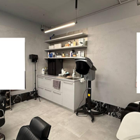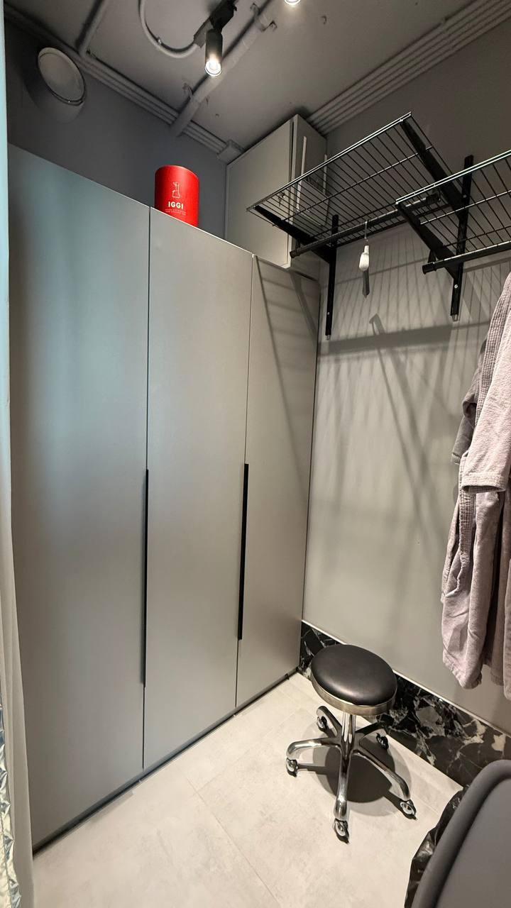 11) стойки с зеркалами, столешница из металла, парикмахерские кресла, стойка ресепшен, тумба для кофемашины и посуды - всё уже укомплектовано под открытие салона.