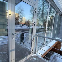 3) дизайнерский ремонт, в интерьере отделка нержавеющей сталью и зеркалами, двери скрытого монтажа, витражное остекление.