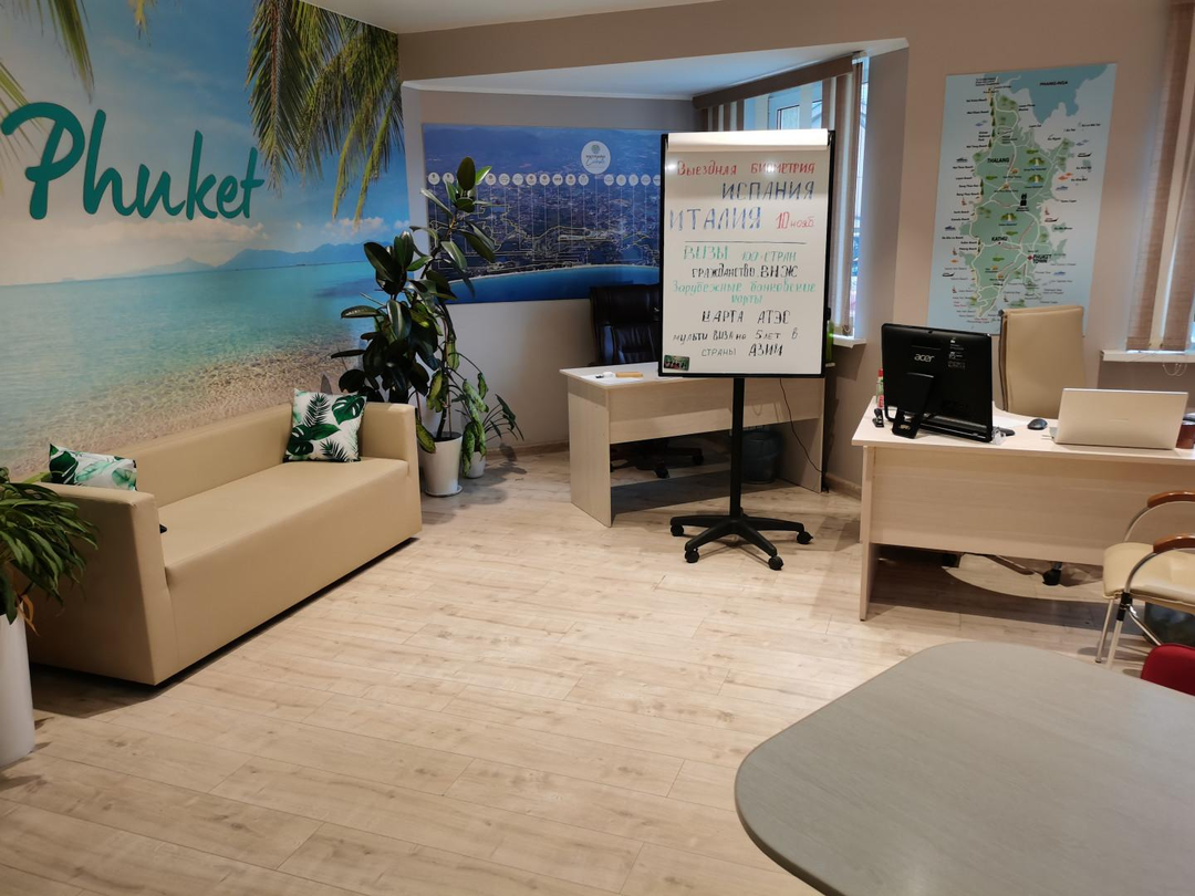 Подходит для комфортной работы 5-6 сотрудников и общения с клиентами.