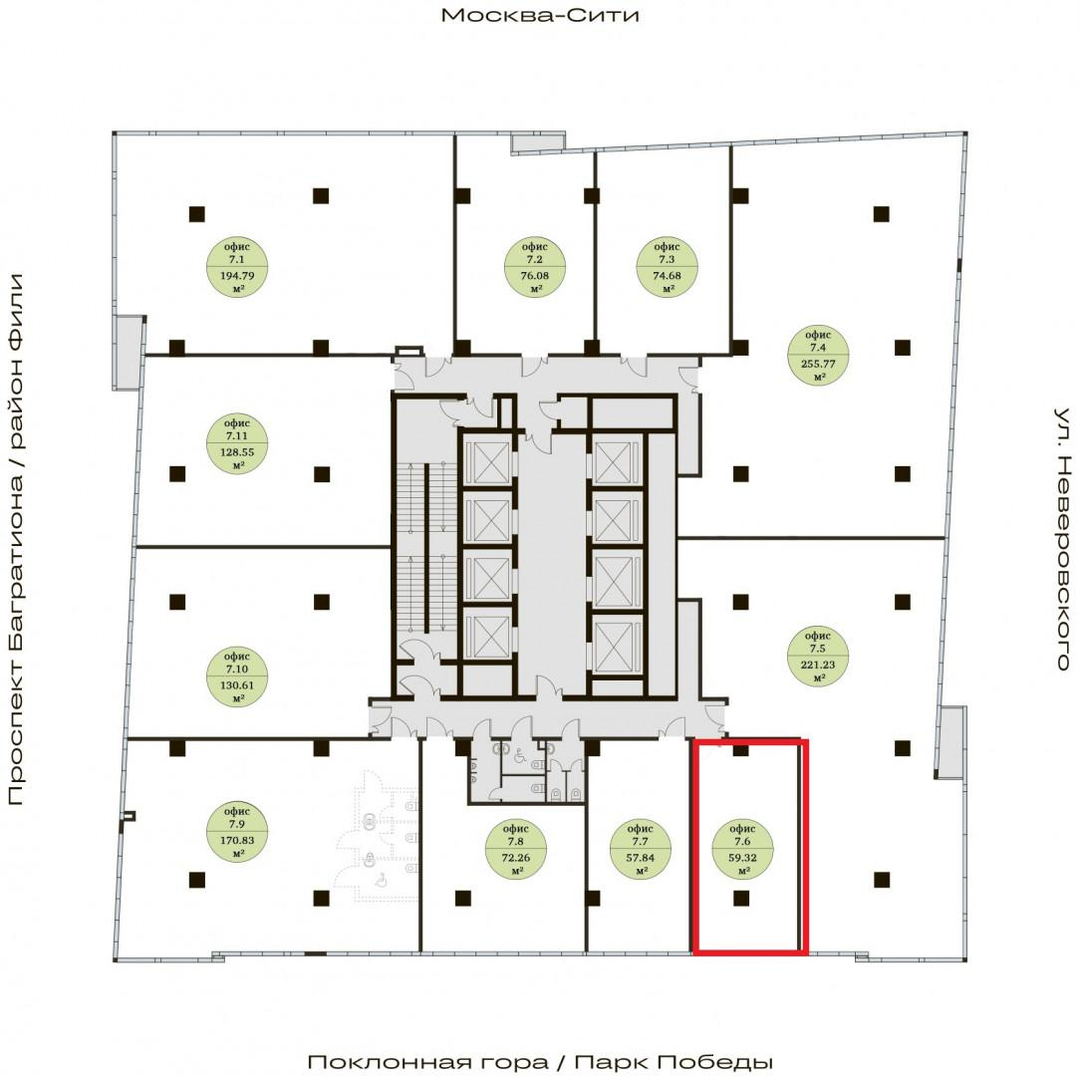 Архитектура и дизайн: Панорамное остекление в каждом офисном блоке, лаконичность и строгость форм. Этаж разделен на 12 офисных блоков площадью от 64,5 до 270 кв.м. Внутренние пространства сочетают в себе комфорт, камерность и технологии: просторные офисы с высотой потолков 3,7 м, приватные офисов с террасами, highspace-офисы с высотой потолков 7,5м, зоны отдыха, двухсветное лобби с потолками 11,5 метров и площадью 250 кв.метров с приватной зоной для отдыха и встреч.