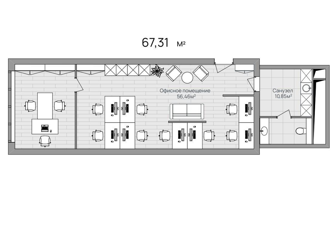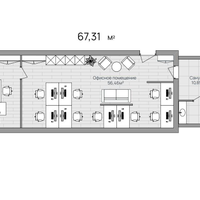 - Лот -67,31 м2 – бизнес-пространство, которое позволяет разместить команду из 8 человек и кабинет её лидера.