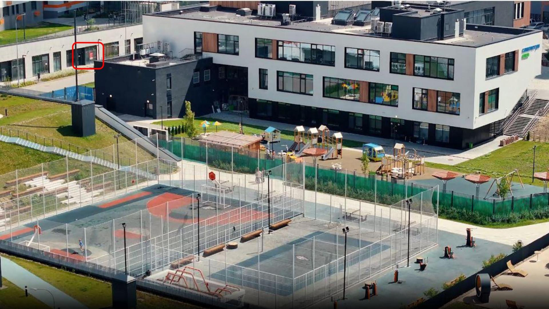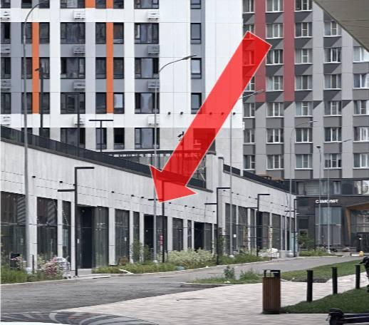 Помещение находится в стилобате многоквартирного дома, напротив школы "Самолетиум" и развитой торговой галереи;