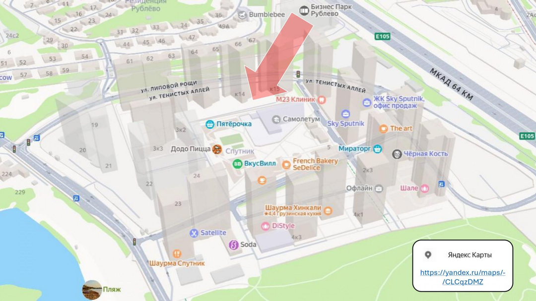 ЖК "Sky Sputnik" расположен в 1км. от МКАД, на Новорижском шоссе.