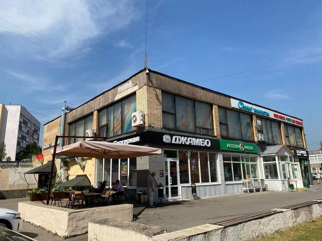 Отличное расположение - первая линия, собственная парковка. Центр города. Высокий пешеходный и автомобильный трафик.
