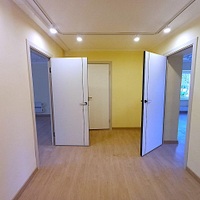Общая площадь - 78м² (по документам - 66м²), три комнаты выходят на три стороны света, две лоджии, панорамные окна, евроремонт, кладовая, кухня, санузел, есть техническая возможность сделать отдельный вход с улицы.