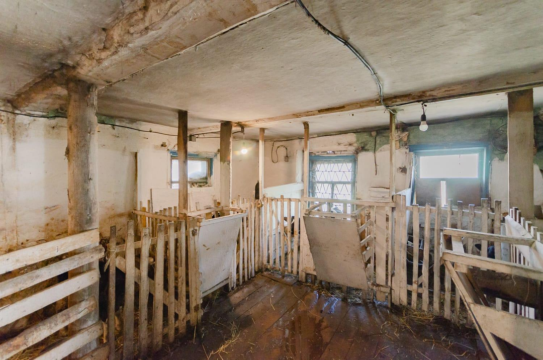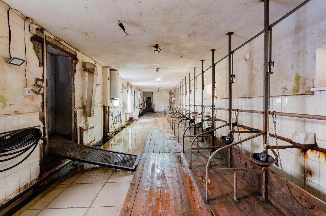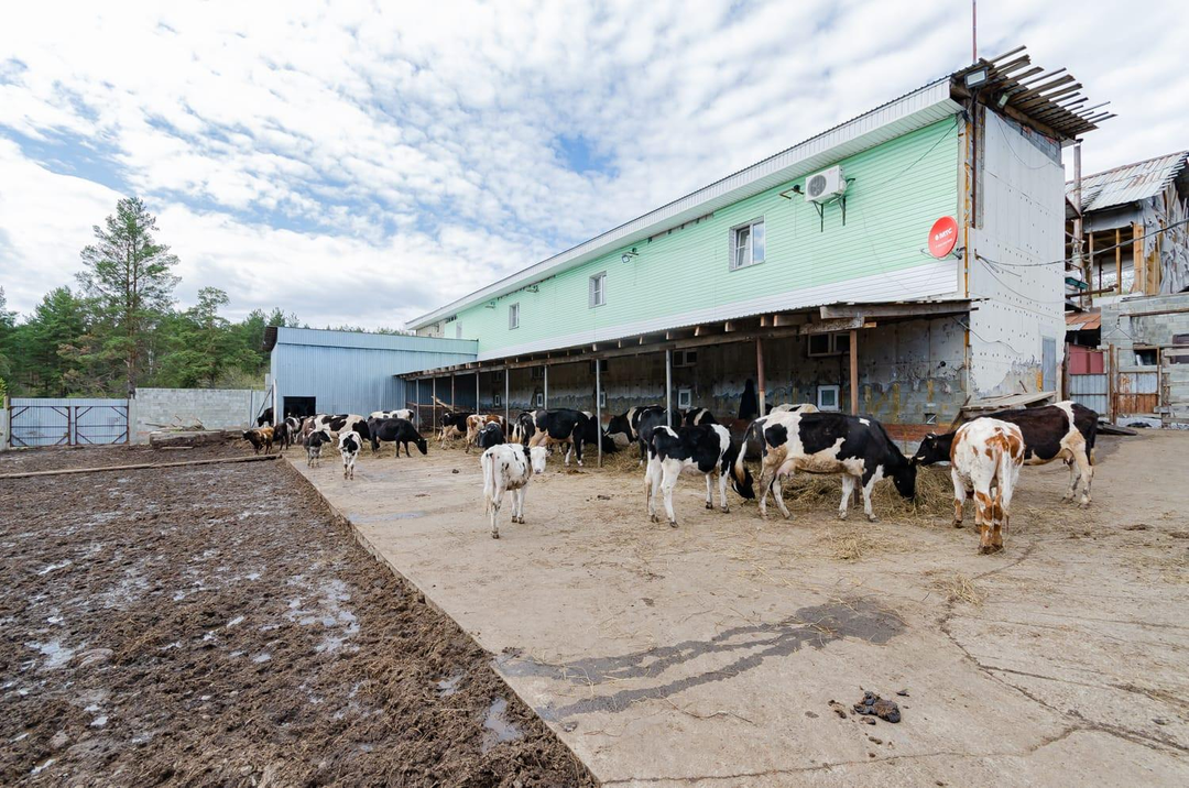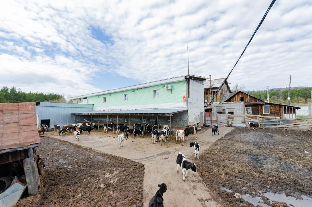Три капитальных здания разной этажности и площадей (коровник, склад, производственный цех).