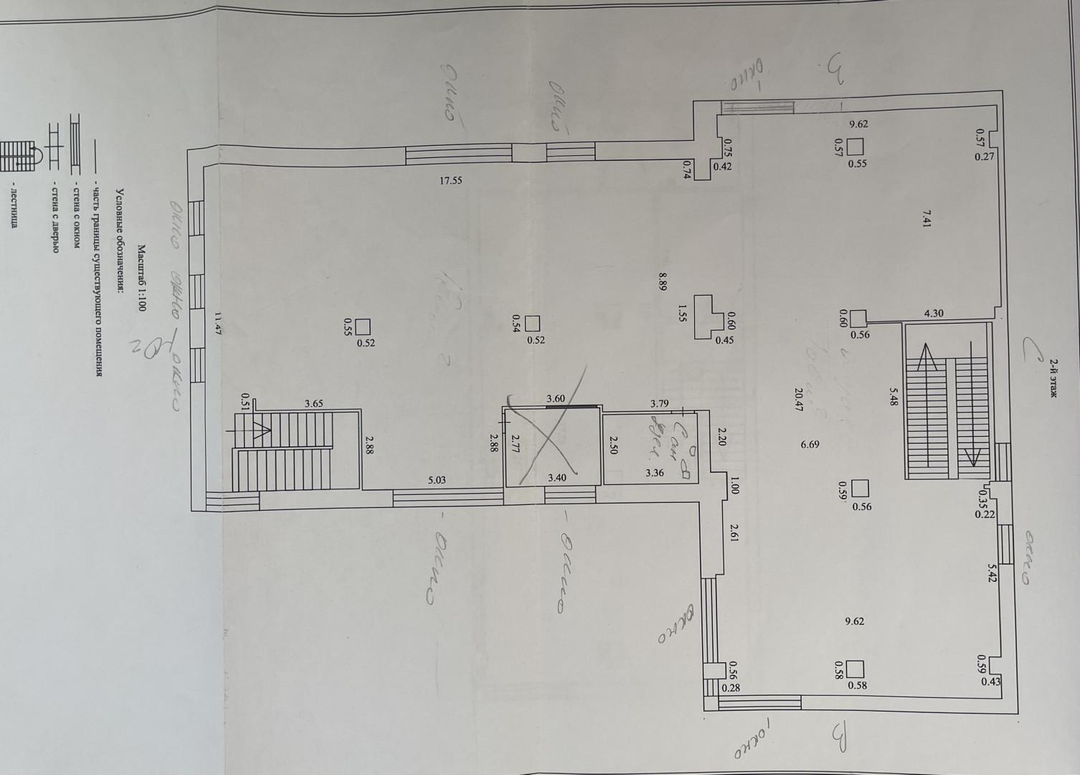 Объект состоит из двух зданий , три этажа на 1-2 этажах расположены офисные помещения, третий этаж цельный .