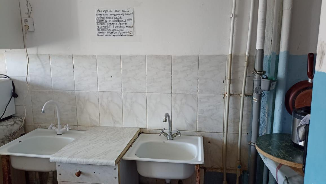 Своя маленькая кухня. Можно установить душевую кабину и санузел ( в некоторых квартирах в доме так сделали). Туалет (на 3 человека, закрыт на ключ, чистый), и душ на этаже рядом.