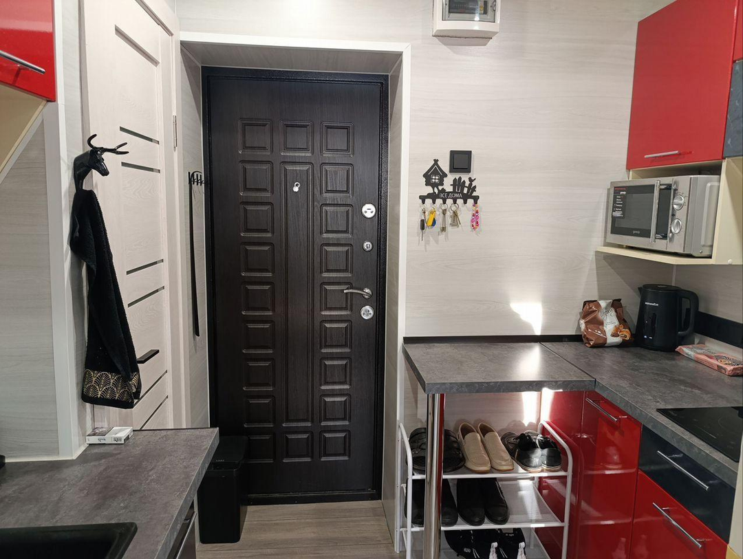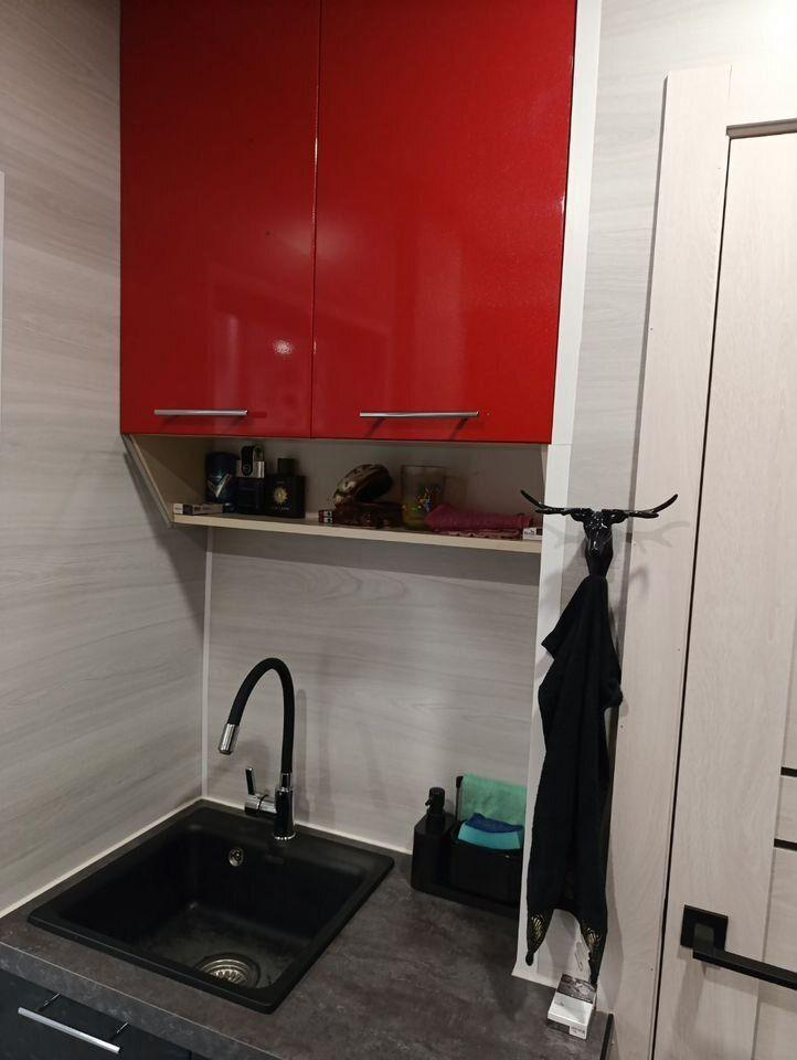 Отдельная кухонная зона: Удобное и функциональное пространство для приготовления любимых блюд. В дополнение в кухонном гарнитуре находится стиральная машина,которая останется новым владельцам. На кухне установлено 3 тройных розетки. Установлен кондиционер.