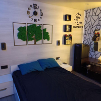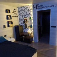 Стена в спальной зоне,а также зона ТВ,и сама кухня изготовлены в одном стиле из качественного ламината,что в свою очередь прослужит долгие года.