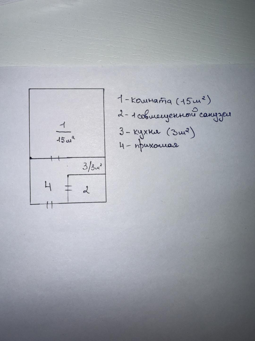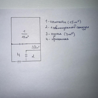 • Площадь комнаты №1 15 м²