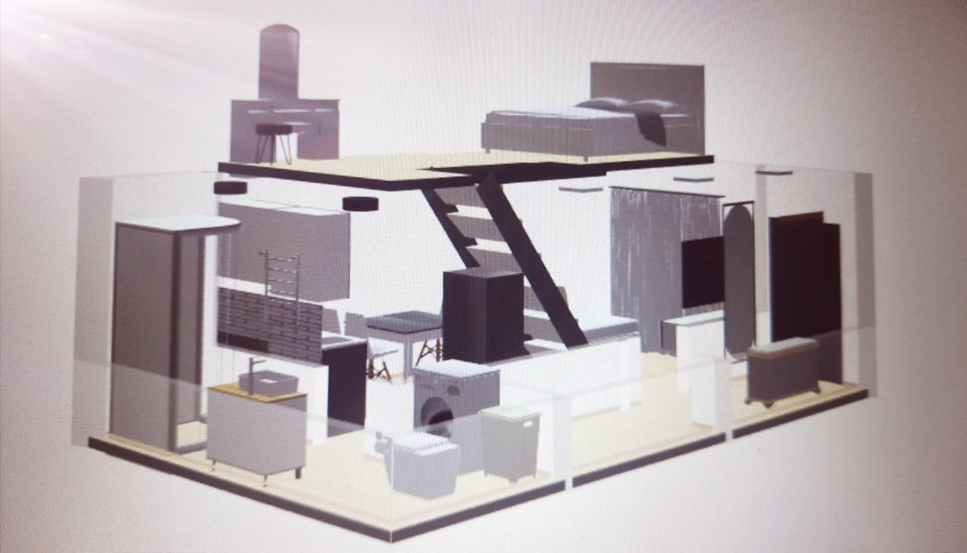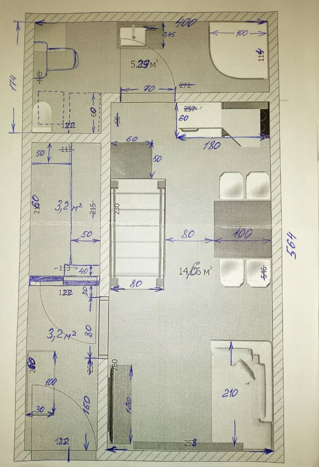 На фото визуализация планировки с реальными размерами помещения.