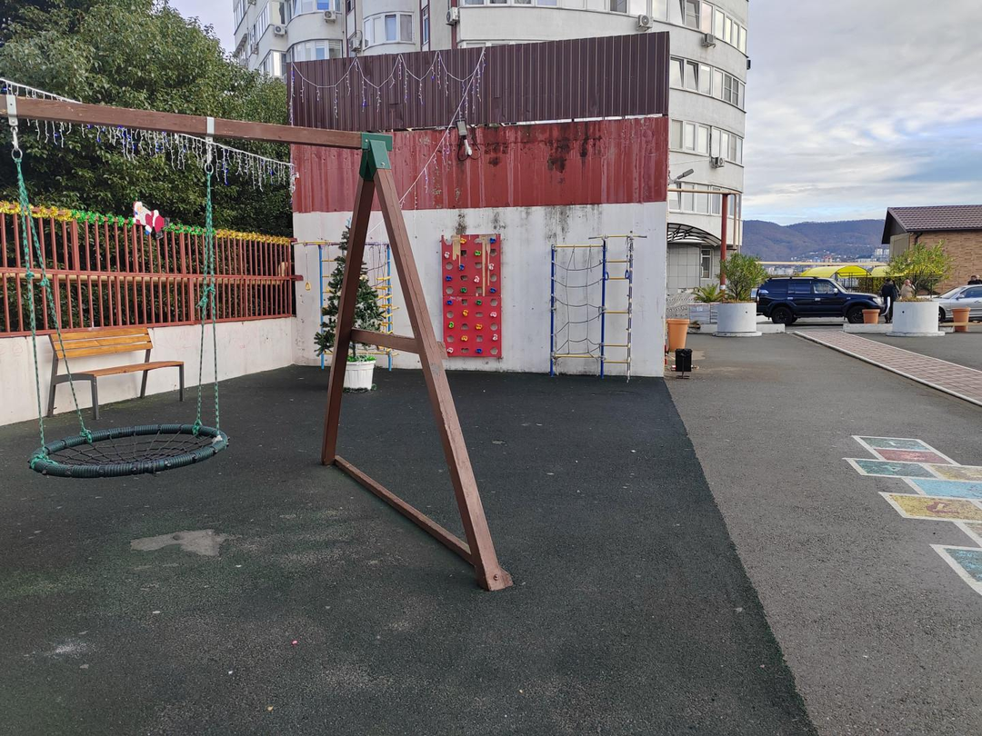 Своя закрытая территория, шлагбаум, свободный паркинг, детская площадка, зона выгула питомцев, ландшафтное озеленение, в общем всё, что нужно для комфортного проживания в городе - курорте.