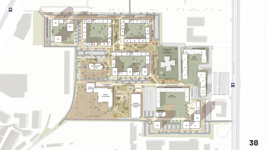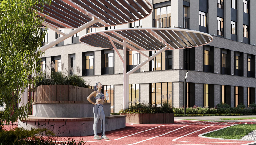 **Квартал с насыщенным благоустроиством, большим количеством общественных пространств, детских площадок, зон отдыха и спортивных объектов.**