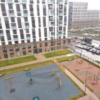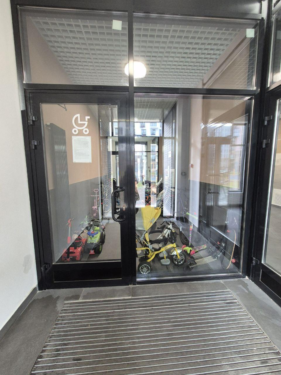 Колясочная на первом этаже. Во дворе дома размещена детская, спортивная площадки и зона отдыха. Двор без машин.