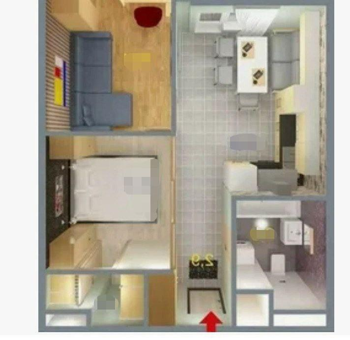В квартире есть прихожая, небольшая гостиная зона с диваном, кухонная зона (плита электрическая).