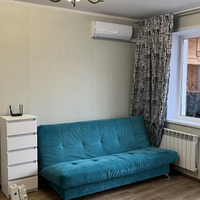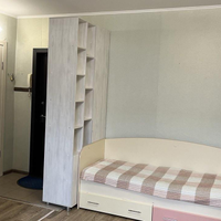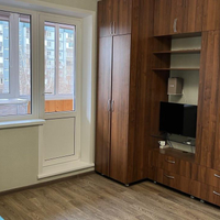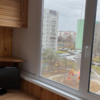 Общая площадь квартиры 26 кв.м., с полной площадью лоджии 33,6 кв.м.Высота потолков 2,6 м.Комната площадью 14.4 кв.м. Кухня компактная с кухонным гарнитуром, электроплитой.Большая лоджия 7.6 кв.м. утеплена, установлены качественные пластиковые окна, зоны хранения - шкафчики. Выведено освещение. Оборудовано как рабочее пространство, кабинет.