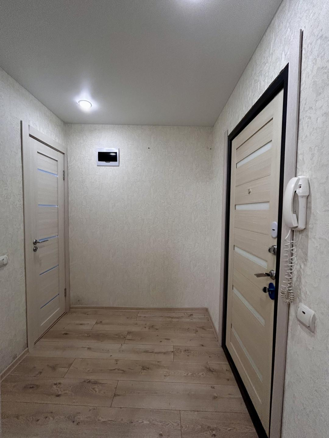 В квартире выполнен новый, современный ремонт, а именно: поклеены обои, натяжные потолки, светоточки по периметру, на полу ламинат/плитка, окна ПВХ,совмещенный санузел в плитке, установлен полотенцесушитель, домофон, новая входная дверь. В квартире произведена замены всей электрике/сантехнике. Низкие коммунальные платежи.