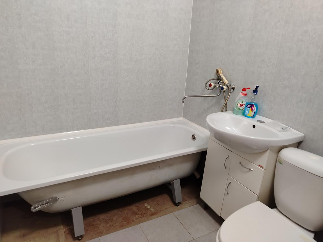 • Совмещенный санузел: Отделка панелями ПВХ на стенах и плиткой на полу – современно и функционально!