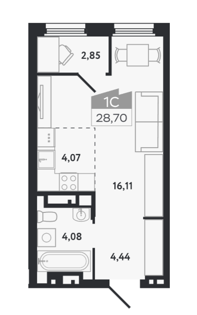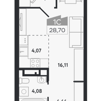 Светлая видовая 1-х комнатная квартира общей площадью 28.70 кв.м. на 12-м этаже нового 26-ти этажного дома в ЖК "Квартал 1604".