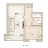 Площадь: 29,2 м²