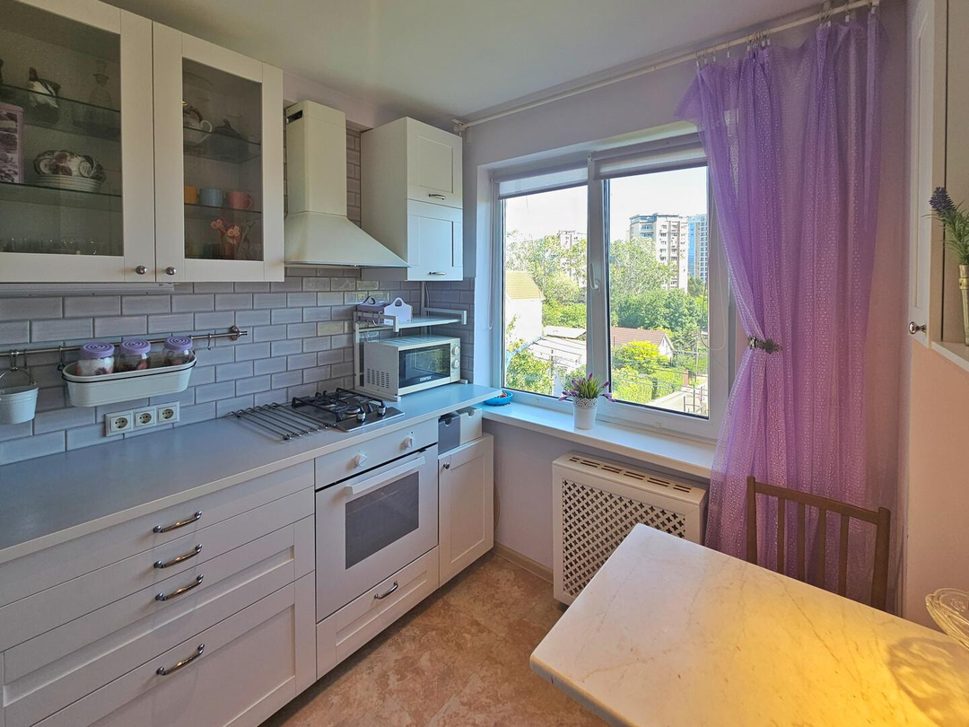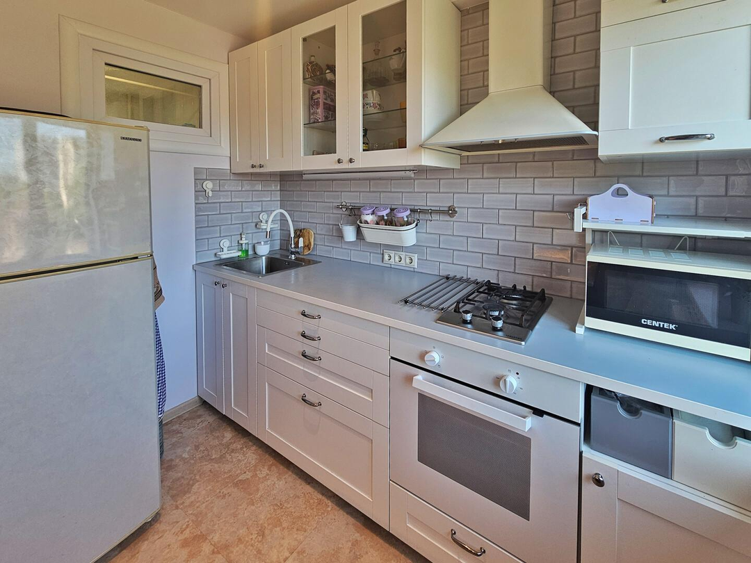 В квартире сделан полный капитальный ремонт, заменены трубы, установлена новая мебель и бытовая техника. Вы сможете наслаждаться потрясающим видом из окон, откуда немного видно море.