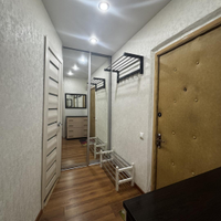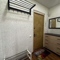 Остаётся кухонный гарнитур, кондиционер, большой встроенный шкаф (гардеробная), мебель в прихожей.