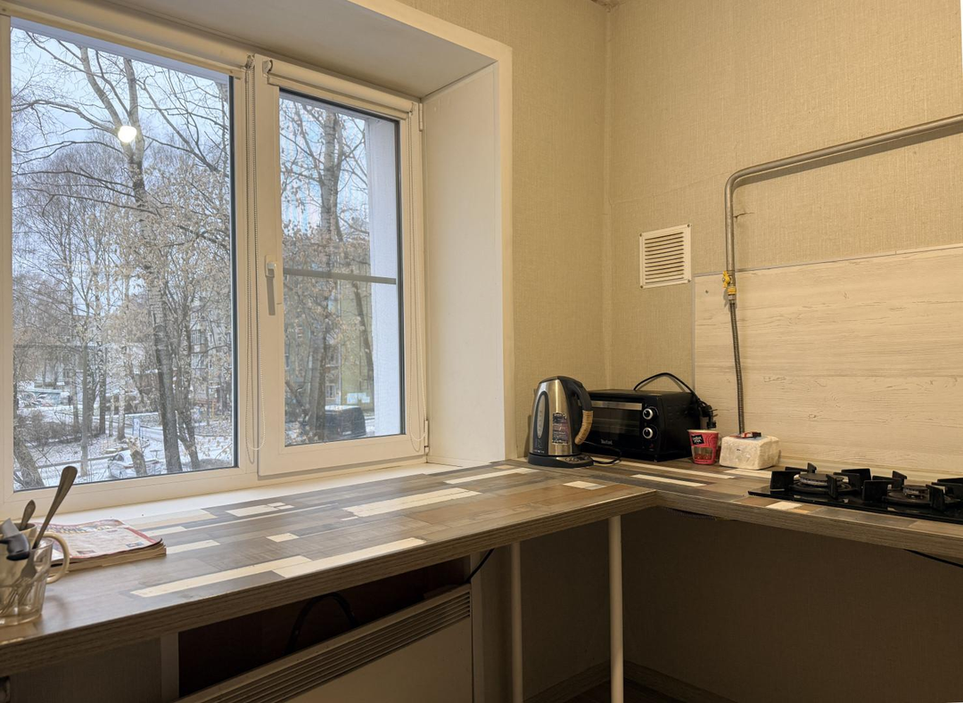 Площадь 29,5 м². Состояние: хорошее — можно заехать и постепенно обновлять косметику. Пластиковые окна.