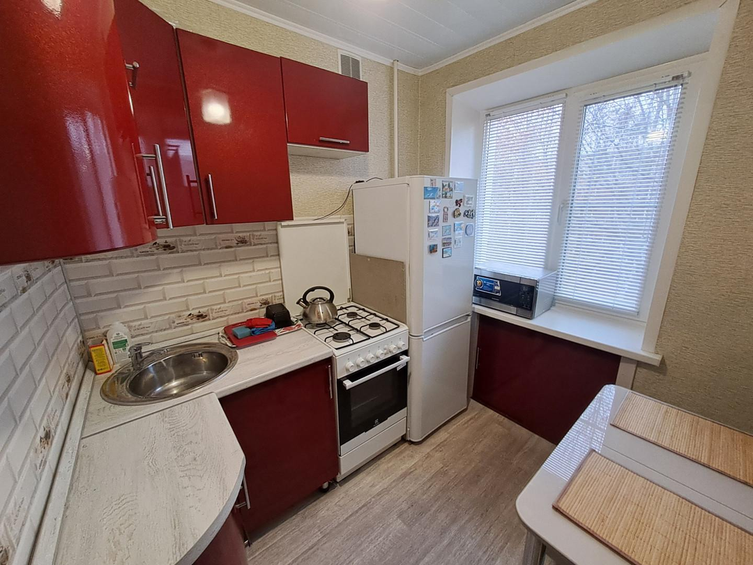 Из мебели и техники остается: кухонный гарнитур, газовая плита, микроволновая печь, большой раскладной диван в комнате, стенка, гардеробная в коридоре.